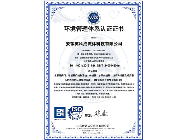 安徽英科成流體科技有限公司位于黃山腳下長江之濱的中國古銅都-安徽省銅陵市。公司注冊(cè)資金1.1億,是國內(nèi)一家專業(yè)致力于給排水行業(yè)系統(tǒng)解決方案、閥門以及智能閥門技術(shù)研發(fā)與生產(chǎn)銷售服務(wù)為一體的企業(yè)。 我們擁有完善的質(zhì)量控制體系和檢測(cè)設(shè)備,公司主要的產(chǎn)品有閘閥、蝶閥、偏心半球閥、液控蝶式止回閥、靜音止回閥、橡膠瓣止回閥、活塞式流量調(diào)節(jié)、錐型閥、節(jié)能型泵控閥、倒流防止器、減壓閥、排氣閥、排泥閥、伸縮器、閘門、啟閉機(jī)等二十多個(gè)系列,可以充分滿足客戶的一站式需求。……
